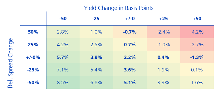 Chart 4: Expected return (%) in the event of changes in the yield/credit curve